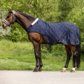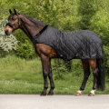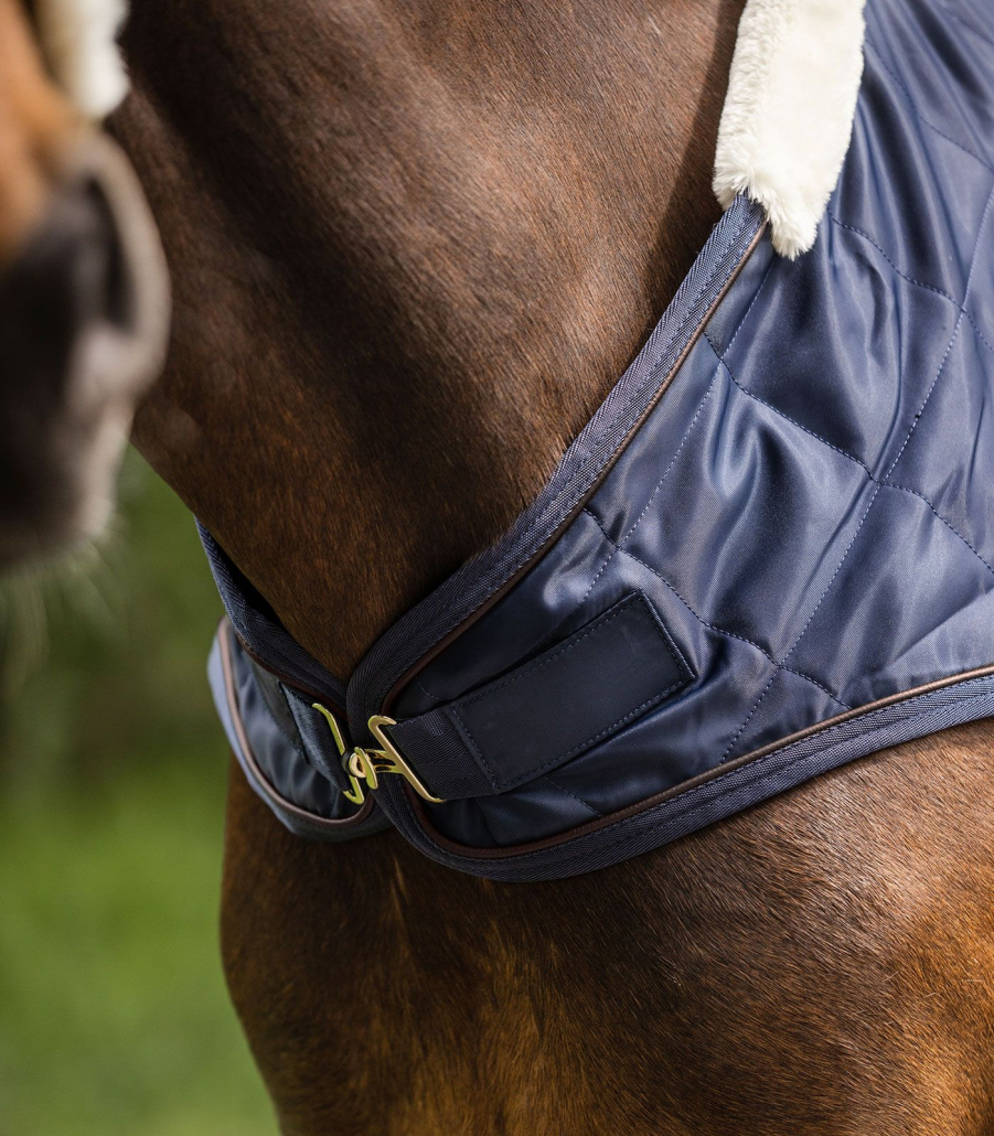Hochwertige Führmaschinendecke gefüttert mit künstlichem Kaninchenfell für die kalten Tage. Das Kaninchenfell speichert optimal die Körperwärme des Pferdes, ist besonders weich und verhindert Scheuerstellen. Durch das Felldetail am Widerrist werden Druckstellen verhindert. Mit längenverstellbarer Kreuzbegurtung, T-Frontverschluss und Metallösen zur Befestigung eines Schweifriemens.Außenmaterial: 100% Polyester