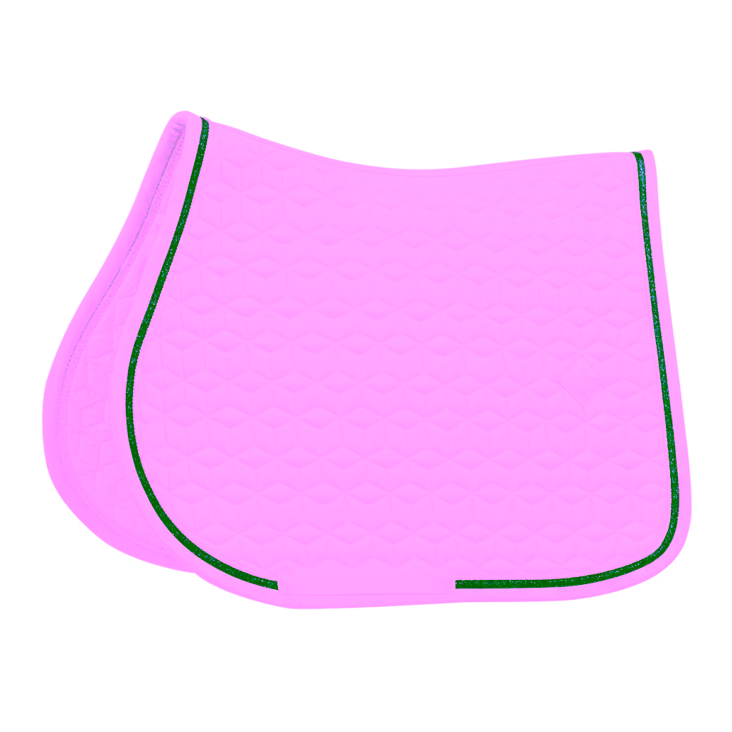 Unsere Schabracke mit Glitzereinfassung ist für Springen geeignet und polstert hervorragend zwischen Pferderücken und Sattel, so dass sie vor Verspannung schützt. Es gibt keine störenden Schlaufen zur Befestigung am Sattel, sondern nur einen Nylonriemen für den Gurt.